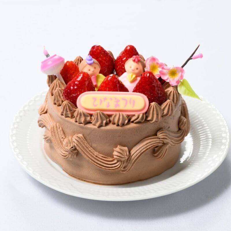 定番のイチゴショートとチョコ生ショートをひな祭りぴったりにデコレーションしました。どちらも700円(税込)です。