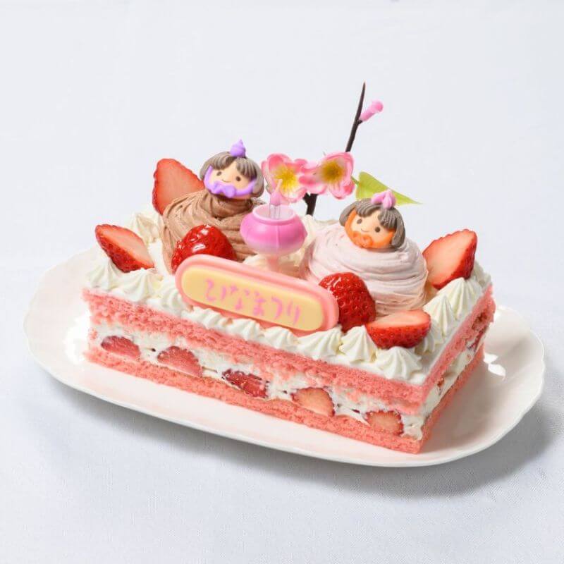 ひな壇かざりをイメージしたデコレーションケーキ。大きさは1つ約 16.5 × 8 cm(縦×横)で、3,200円(税込)です。
